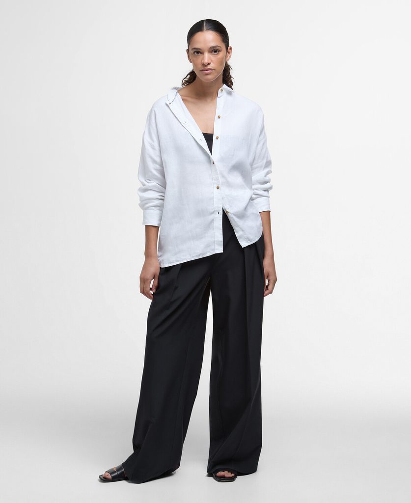 Когато е лято – лен. Дамската ленена риза Hampton е идеалният избор за топлите дни с дългите си ръкави и удобната oversized кройка. А щом е oversized, то е наистина такова: освен свободния силует, ризата е и удължена (покрива ханша, така че може да се носи както пъхната, така и свободно) и има паднали рамене.