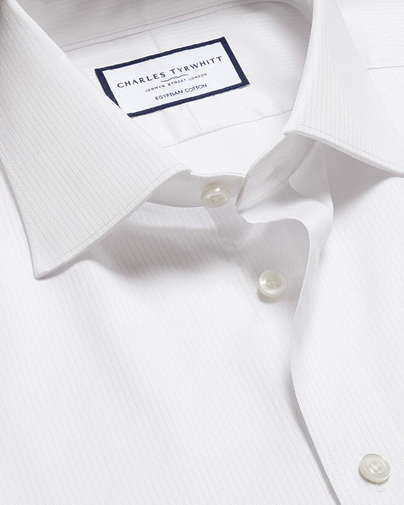 Бяла риза Charles Tyrwhitt – основен елемент в гардероба, на който можете да разчитате във всяка ситуация. В този случай – с фин, нежен райет. Прецизно изработена от лека и дишаща памучна материя, която се глади лесно и запазва безупречния си вид през целия ден.