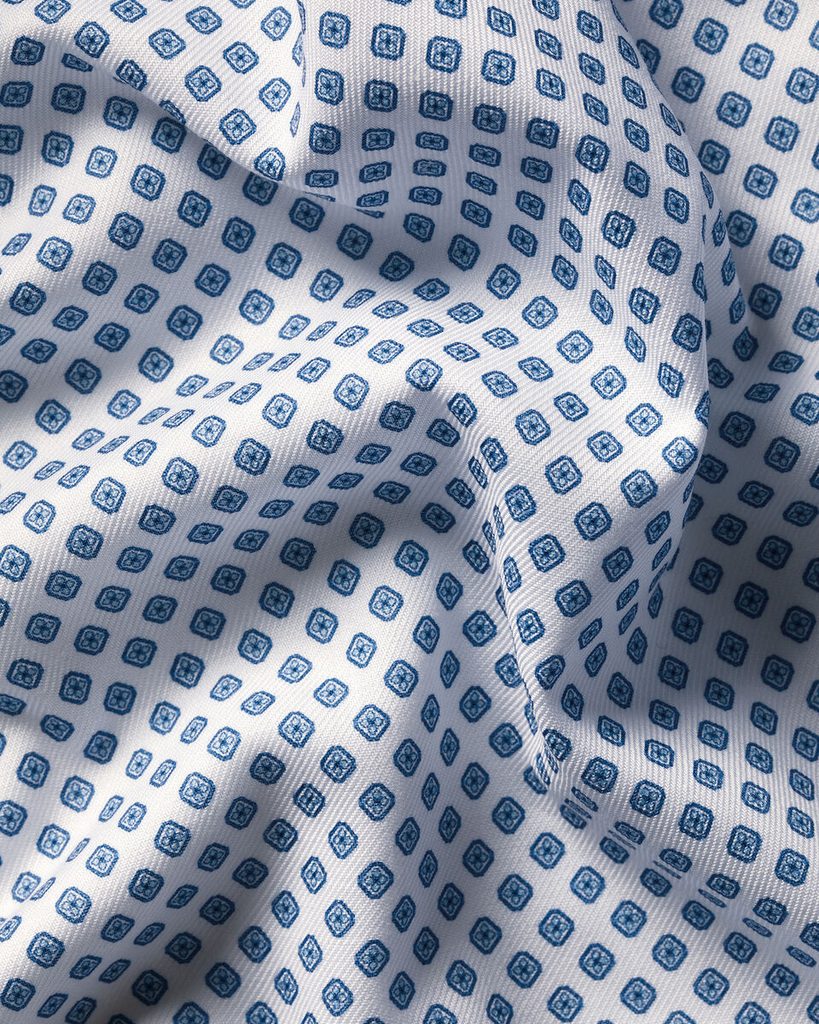 Светлосиня риза Charles Tyrwhitt с фин геометричен дизайн, който придава модерен акцент на класическата визия. Елегантна, но непринудена – идеален избор за дни, в които искате да изглеждате стилно, без да носите вратовръзка.