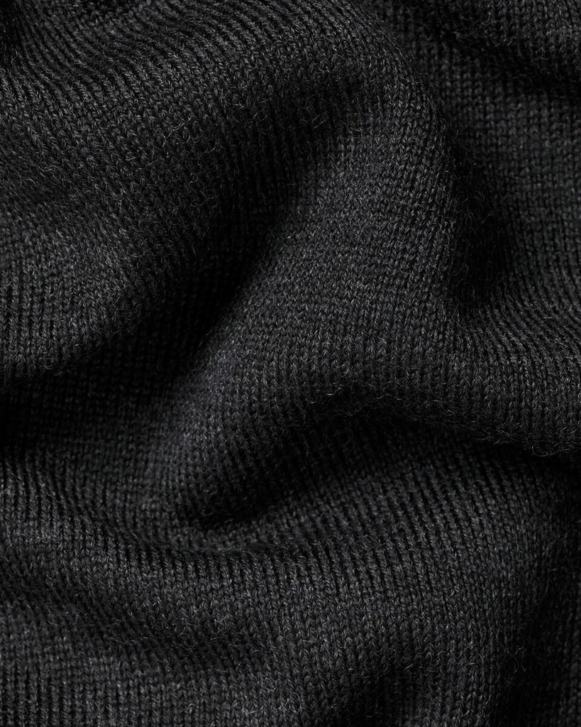 Изработен от 100% чиста мериносова вълна с сертификат Woolmark, който гарантира първокласно качество и изключителна мекота на материята. Плетивото е естествено еластично, устойчиво на мачкане и миризми, така че остава свежо дори след продължително носене. Кройката е прибрана, но не стегната, с елегантно оребрени кантове за изискан завършек.