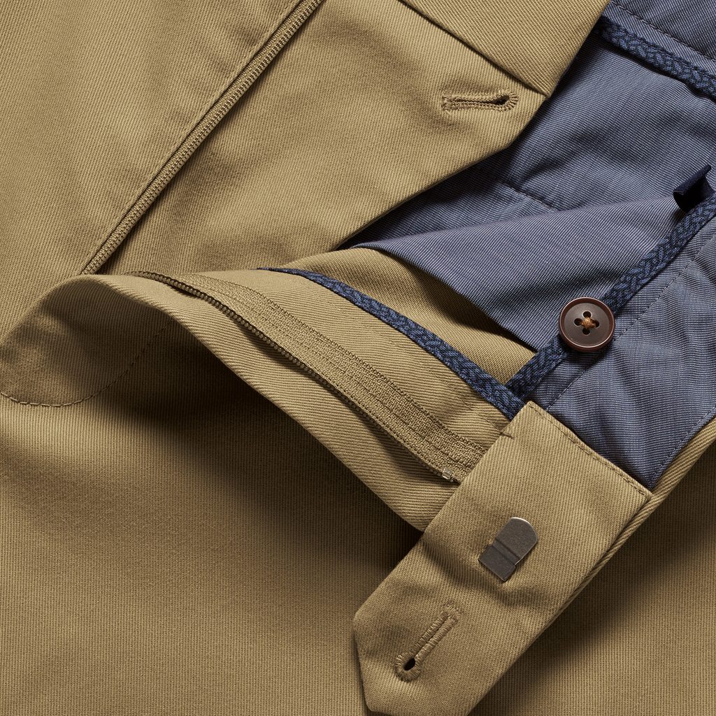Приятен, дишащ чинос панталон в класическа кройка, която производителят удачно нарече "Ultimate". Защо? Като оставим настрана висококачествения памук определено ще ви зарадва добавката на еластан, благодарение на която е този панталон удобен през целия ден, колкото и взискателни да сте. Черешата на тортата е покритието, което не се глади. Това ви предоставя удоволствие не само да го носите, но и да се грижите за него.
