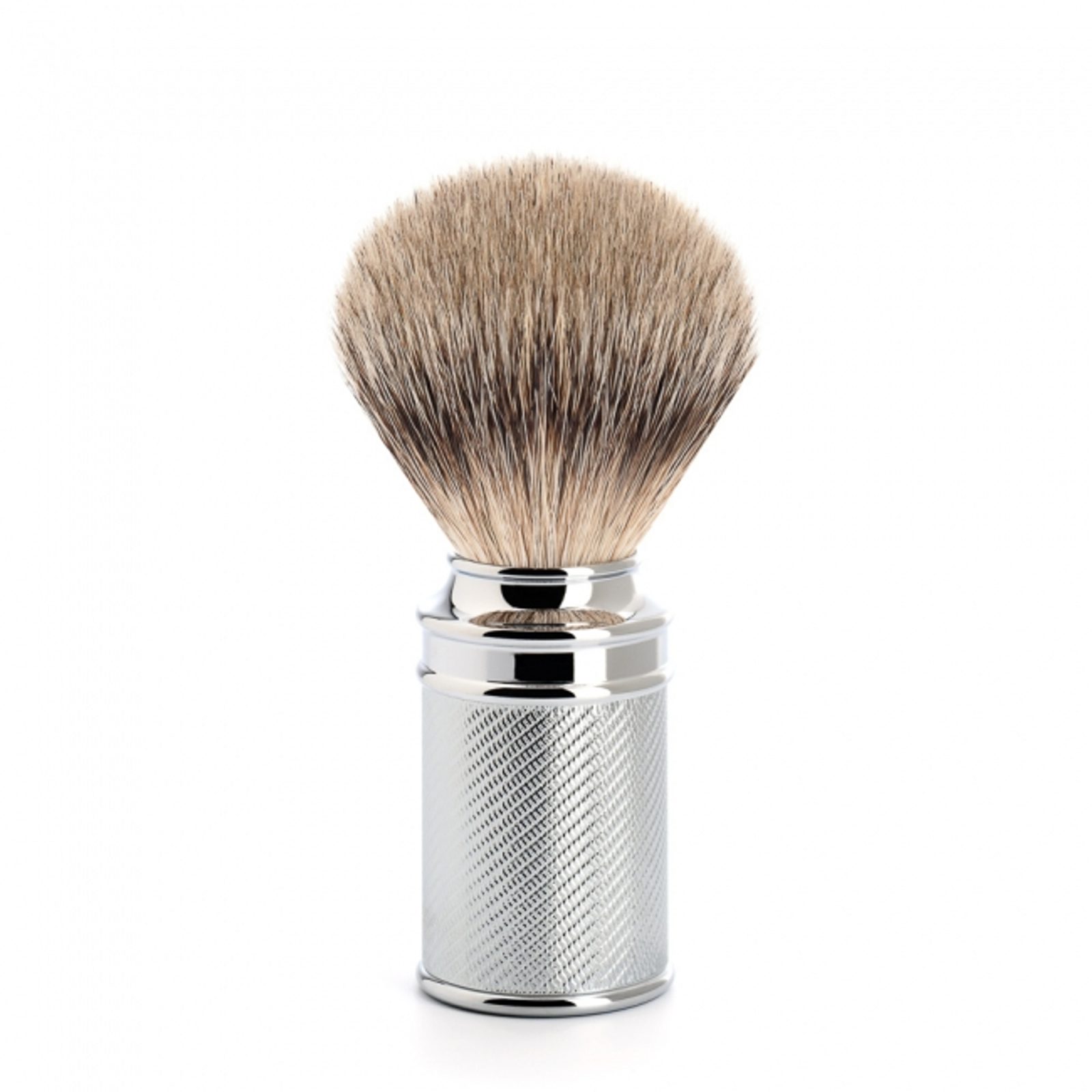 Четка за бръснене от най-качествените и най-фините косъмчета от язовец от типа silvertip. Най-качествените, защото язовецът има съвсем малко от тях и то само на определени места по тялото. Размерът на тази четка е М. Нито гигантски кралски размер, нито малка като за пътуване, а нещо средно между двете.