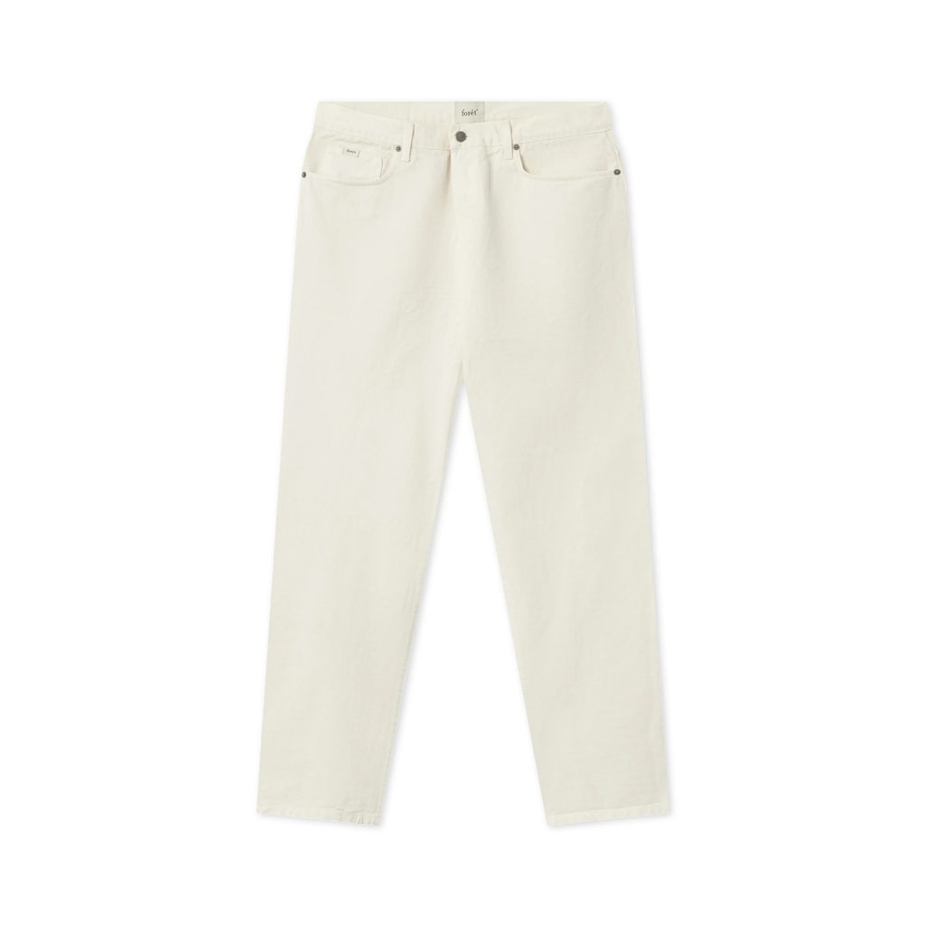 Дънки в модерен и изчистен бял цвят. Те са изработени от внимателно добит органичен памук и несъмнено са функционални: класическите четири плюс един джоб (тоест два отзад, два големи и един по-малък отпред) освен това: класическо закопчаване с цип и копче с хайки за колан – всичко това в една удобна класическа кройка.