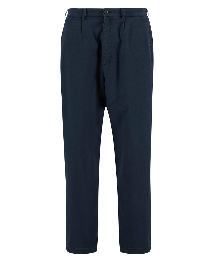 Barbour Cotton Linen Relaxed Trousers — Navy