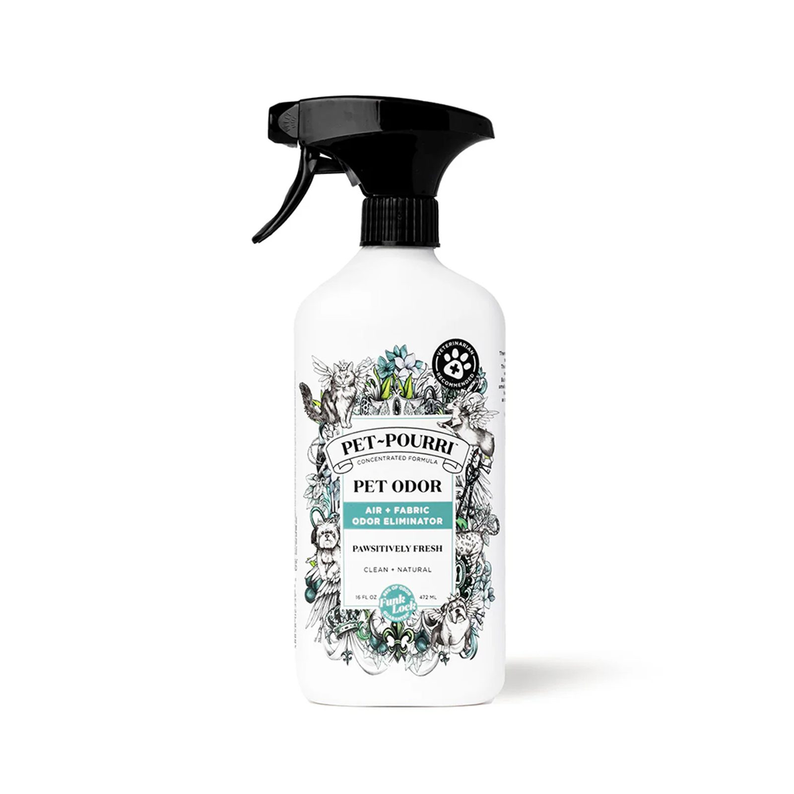 Въпреки че Pet~Pourri няма да разреши възможната миризма на вашия домашен любимец (не трябва да се пръска директно върху животното), но ще се справи с всичките му последствия: просто напръскайте изключително свежия спрей върху повърхности или тъкани, върху които миризмата вече е оставила... следа.