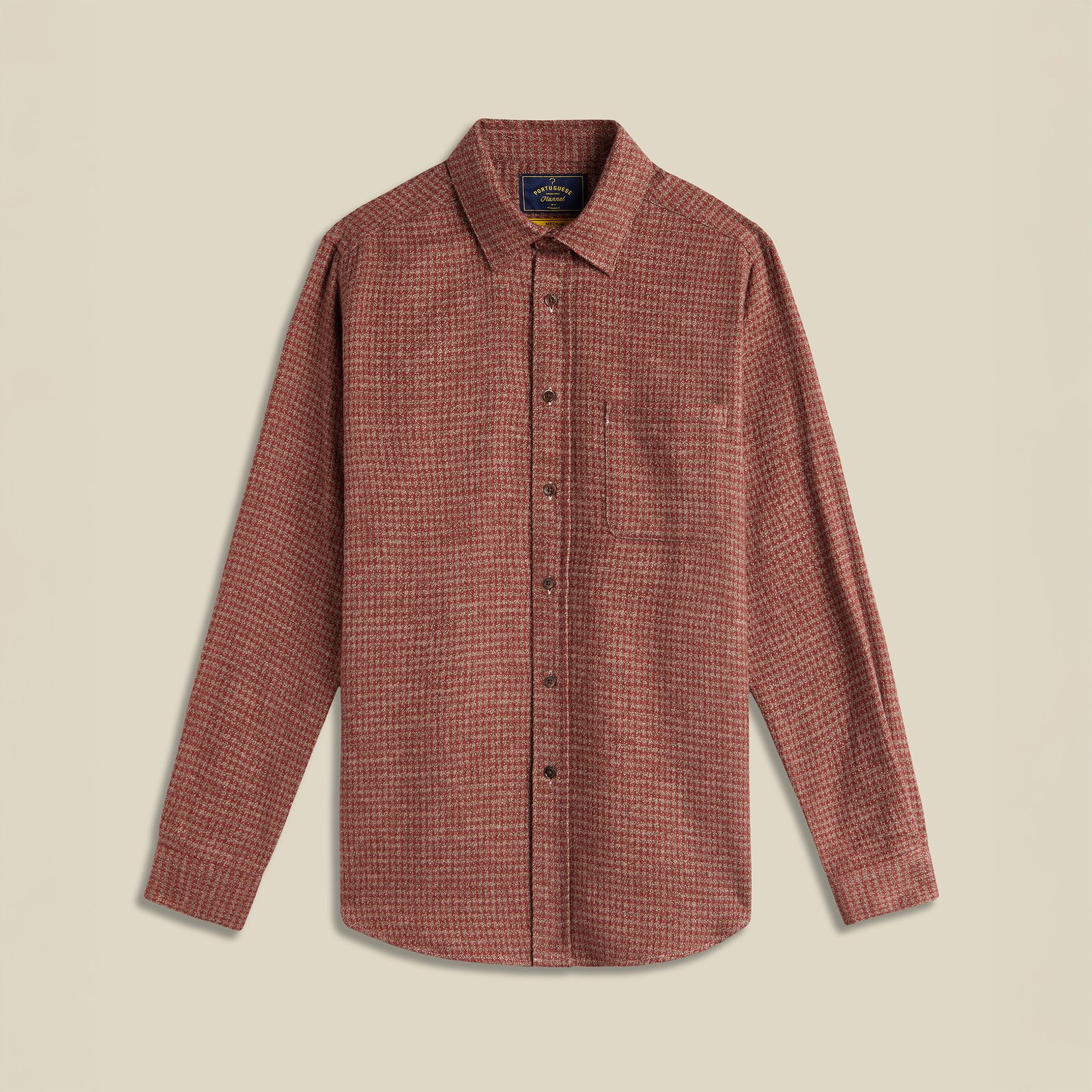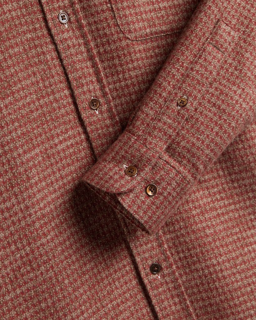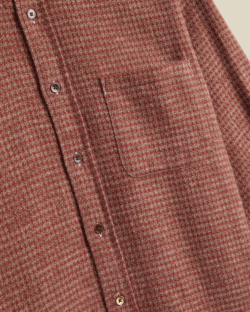 Portuguese Flannel си игра с този модел по свой начин - резултатът е риза с абстрактен мотив и топли земни цветове. Моделът ABSTRACT PIED POULE CLAY е с удобна кройка, мек фланелен материал и изражение, което привлича, без да крещи. Фин детайл за тези, които обичат да се вглеждат отблизо.