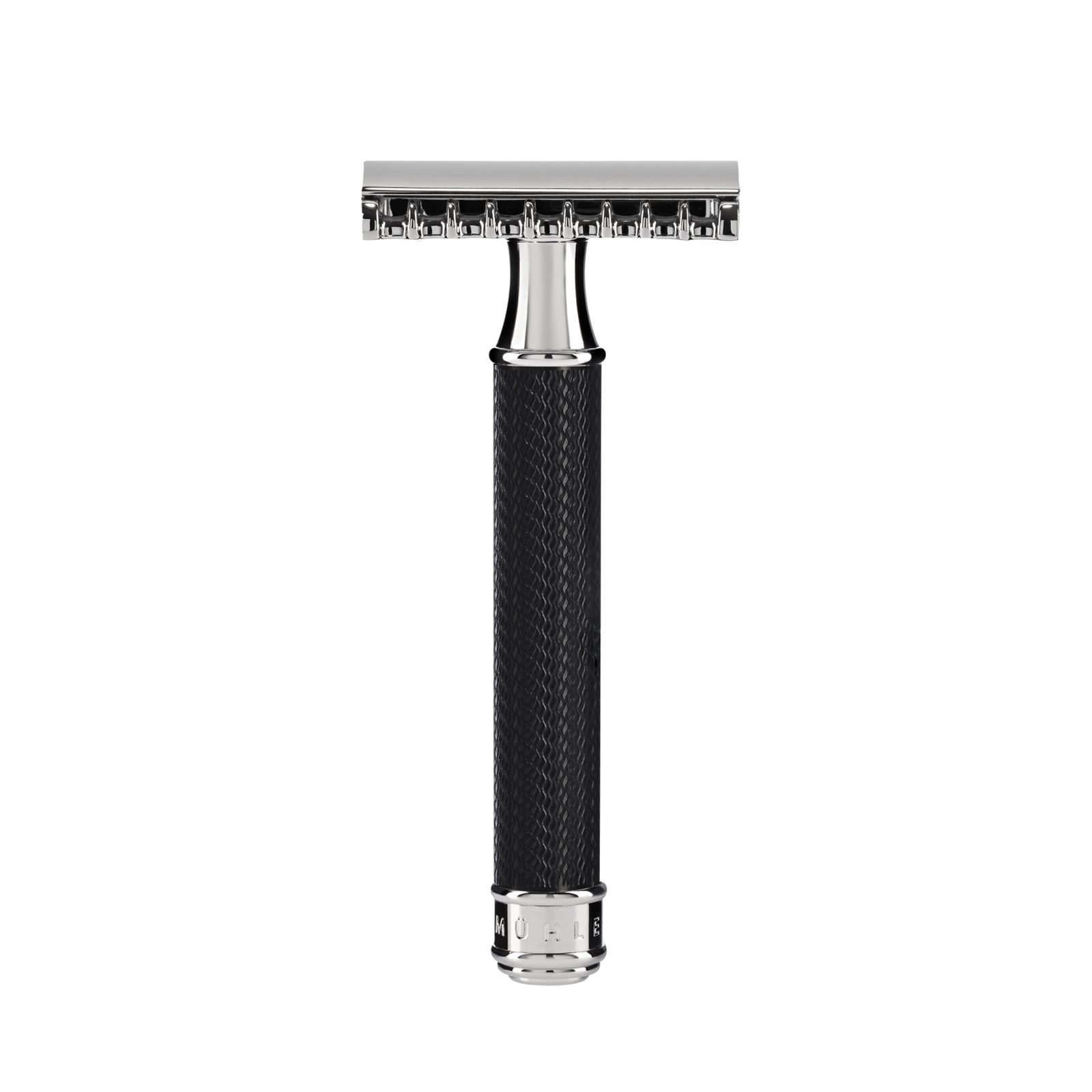 Самобръсначка на традиционната немска марка Mühle с отворена глава (open comb). Елегантен инструмент за всеки, който предпочита класическото мокро бръснене. Черна версия с грубо покритие за по -сигурно държане. Благодарение на отворената глава, тя предлага малко по -агресивно бръснене от бръсначки със затворени глави. Изисква упражнения и страхотно ще обръсне много гъсти бради.