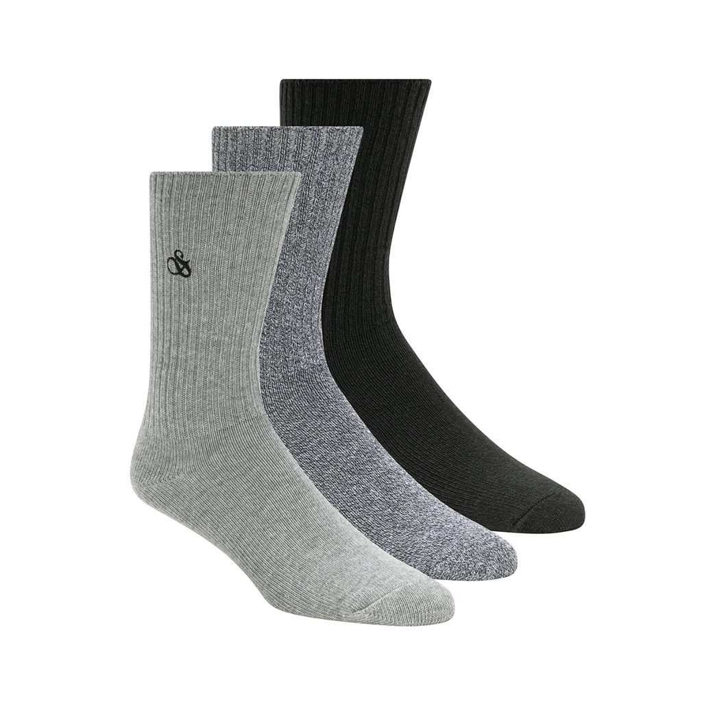 Чорапи, които правят това, което трябва: осигуряват пълен комфорт през целия ден. Благодарение на изпитаната лека смес от материали - отговорно произведени памук и полиамид - и тяхната тъкан "Non Terry", те не задушават крака и, напротив, са отлично дишащи в продължение на много часове. Трио от райета, шарки или плътни цветове може да бъде черешката на тортата - всяка тройна опаковка е различна.