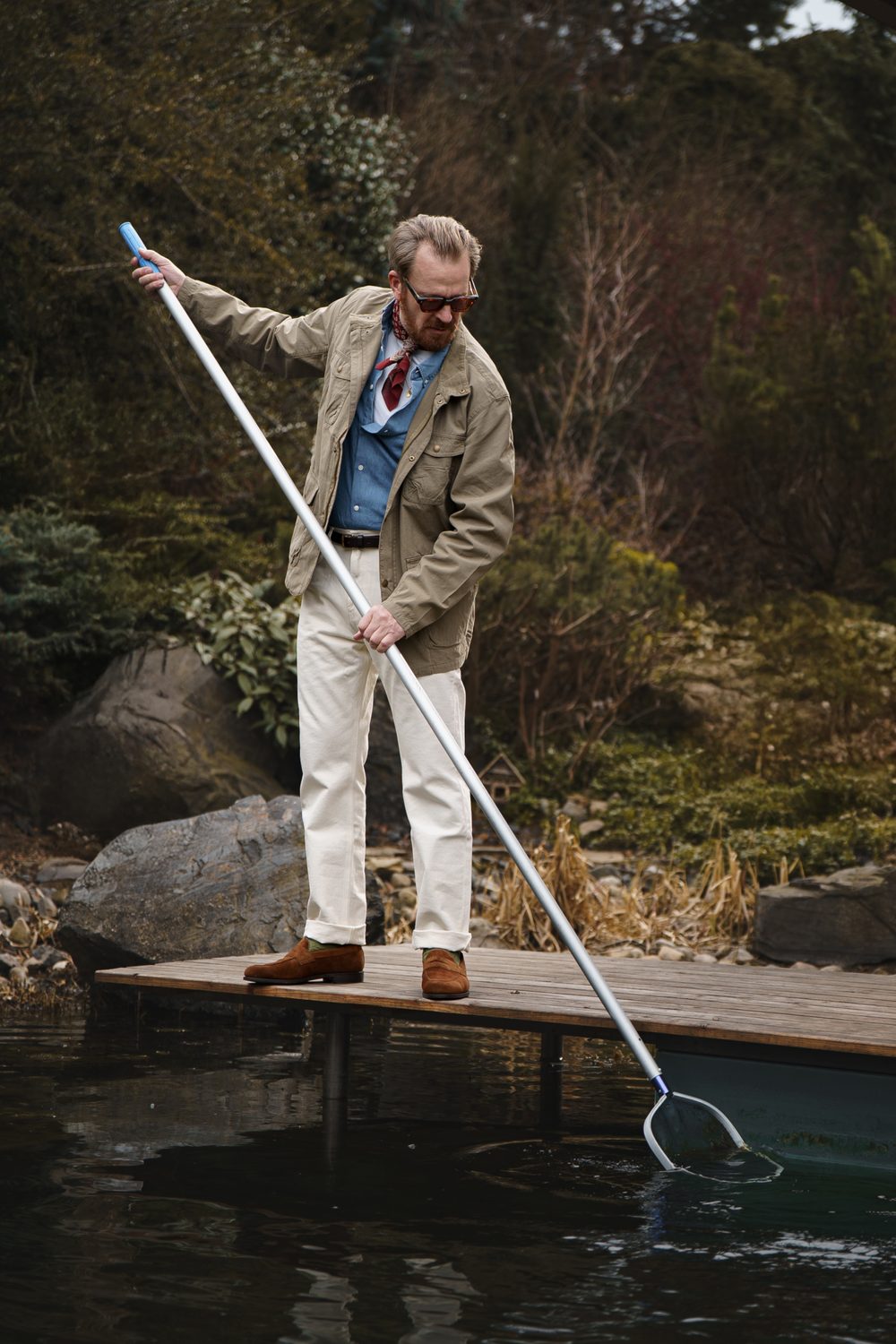 Домакин. Журналист? Бизнесмен? Актьор? Така или иначе заобикалящата го атмосфера и самият той са заобиколени от нещо мистериозно, неназовимо. Може би мисли за бизнес, може би обмисля как би се държал в повратен момент от историята. Може би изобщо не мисли за нищо и след деня оставя реалността да тече със собствено темпо в тишината на местната японска градина. Елате с нас за момент, за да надникнете в този тих момент, в който се случват моменти от нашата собствена история.