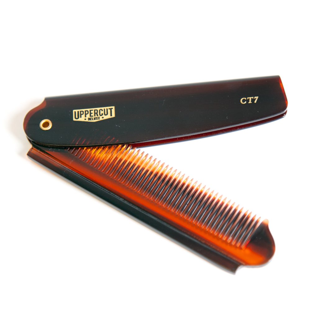 Пътувайте със стил със сгъваемия гребен от професионалната марка Uppercut Deluxe. От пръв поглед ще ви хване окото страхотния дизайн в Tortoise цвят на доказана и издръжлива от години целулозна пластмаса, функционалността се осигурява от фините зъбци и изпитаната нишка за отваряне на гребена.