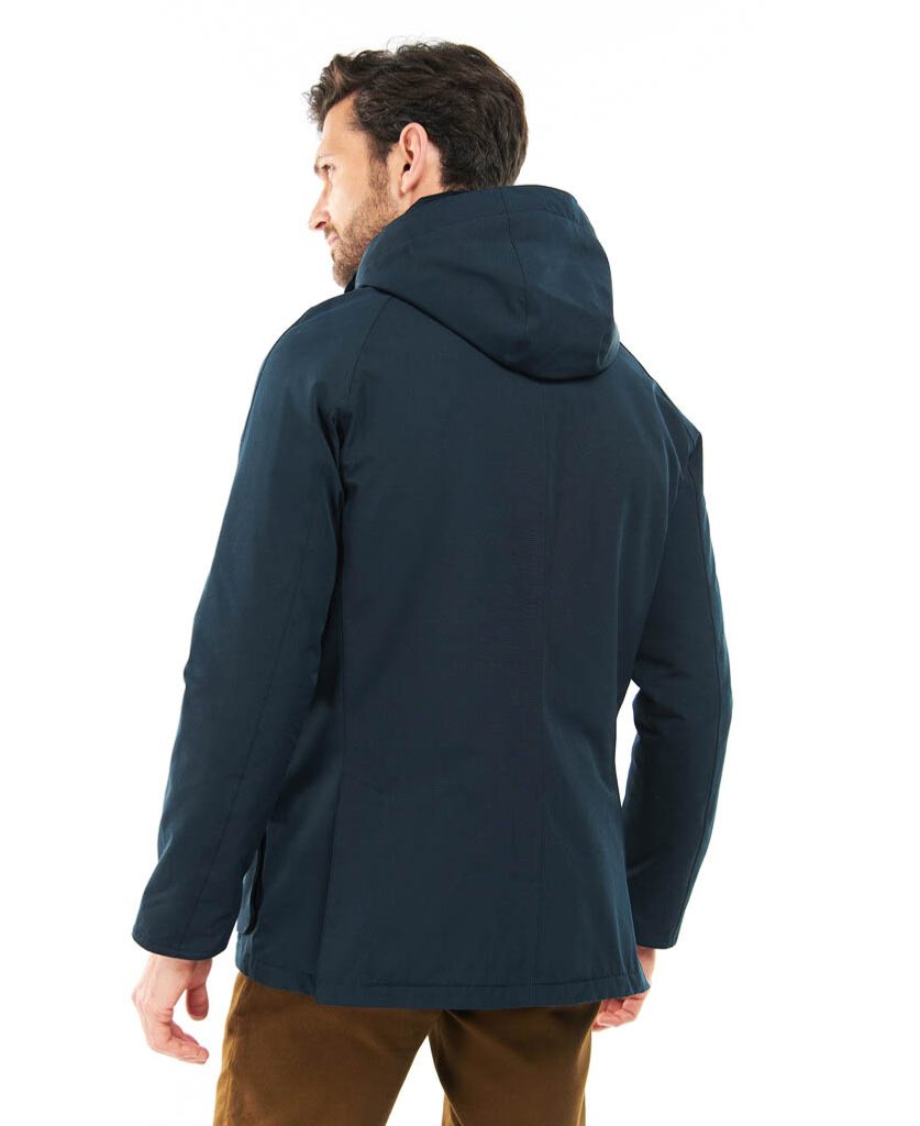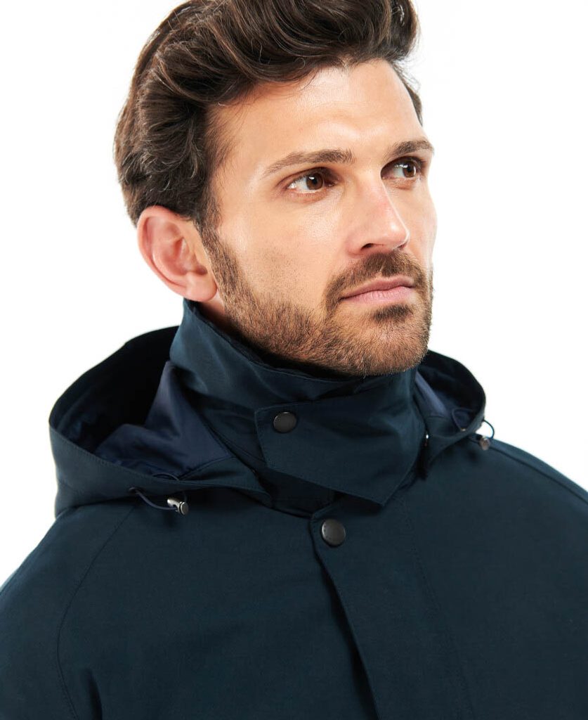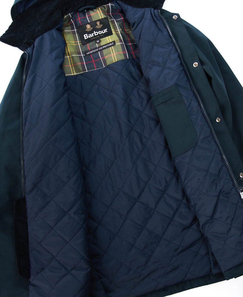 Зимнa вариациq на класическото восъчно яке Barbour Ashby. То e по -дълго oт neго, има подвижна качулка, цип и патенти, два топли джоба за ръцете и страхотнo изолираща ватирана облицовка. Има задължителна яка от велур и тартан детайли отвътре, класиката е добре подходяща леко вталена кройка.